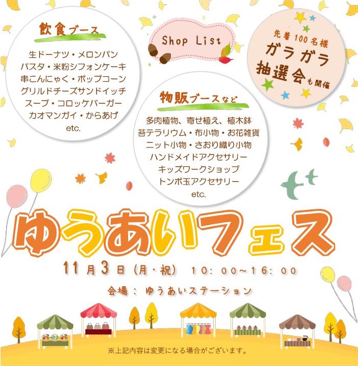 11月3日(月・祝)は、ゆうあいステーションで「ゆうあいフェス」を開催します!