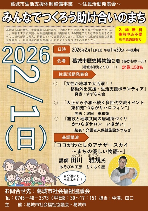 高齢者人口の増加、生産年齢人口の減少、介護人材不足など様々な社会問題が押し迫り、今後ますます深刻となる超高齢社会を乗り越えるべく、葛󠄀城市に広がる「住民主体」の支え合いの取り組みを、活動者のみなさん自らが登壇し、取り組みの発表をされます💕